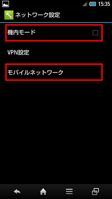 4、 モバイルネットワーク」をタップします。 ※「機内モード」のチェックが外れていることをご確認ください。 |