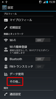 3、 「モバイルネットワーク」をタップします。 ※「機内モード」のチェックが外れていることをご確認ください。 |