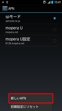 5、 メニューボタンを押して「新しいAPN」をタップします。 |