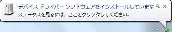 - 右下のタスクトレイに「デバイス ドライバー ソフトウェアをインストールしています」とメッセージが表示されます。